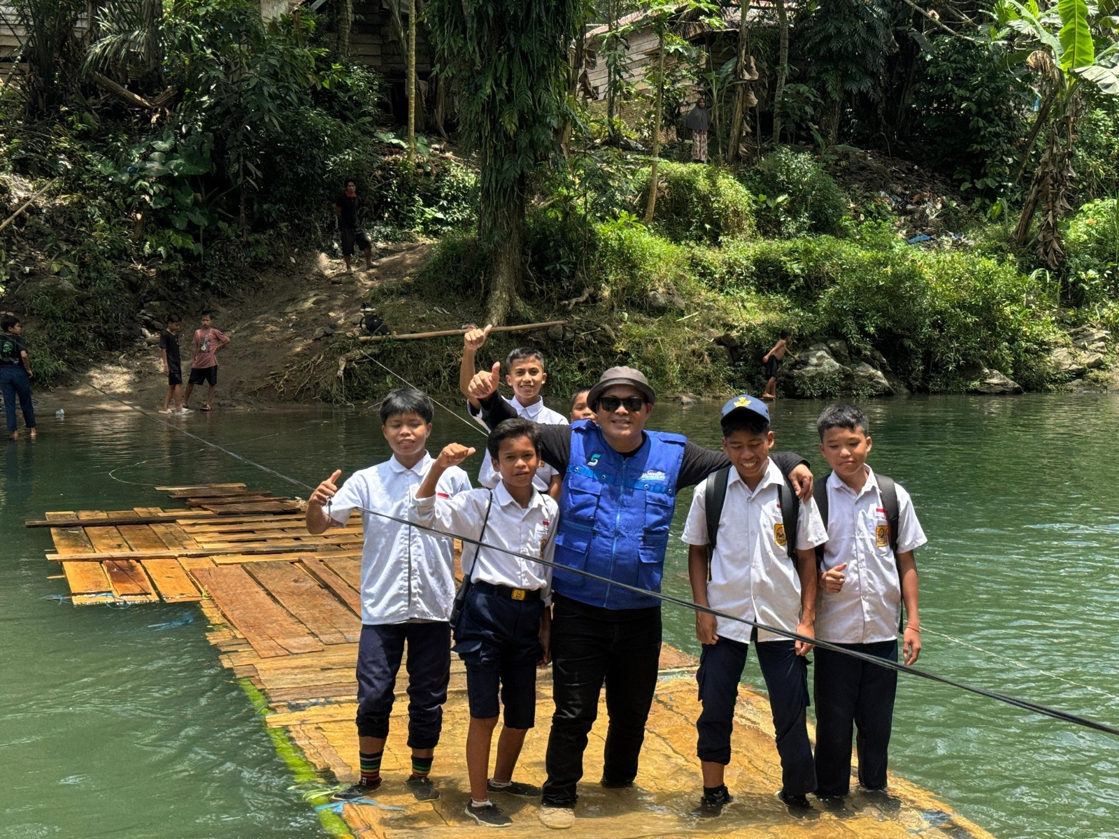 Masyarakat tak lagi berani melintas, memilih menyeberangi sungai berarus deras menggunakan rakit kayu seadanya, mempertaruhkan keselamatan demi bertahan hidup. Anak-anak generasi penerus bangsa bahkan harus rela berhenti bersekolah untuk sementara waktu karena akses satu-satunya menuju sekolah telah rusak parah.