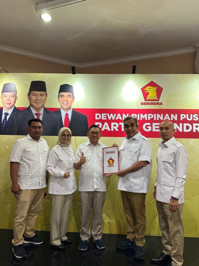Terlihat dari foto yang beredar nampak ABM mengenakan kemeja putih didampingi Ketua DPD Partai Gerindra Sulbar, menerima B1KWK dari Partai Gerindra. (*)