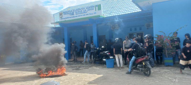 Suarasulbar.id, Mamuju – Puluhan mahasiswa yang tergabung dalam Aliansi Gerakan Mahasiswa Merdeka menggelar aksi demonstrasi di depan kantor PDAM Tirta Manakarra, Senin (19/5/2025). Mereka menuntut perbaikan sistem distribusi air bersih yang dinilai lalai dan merugikan masyarakat.