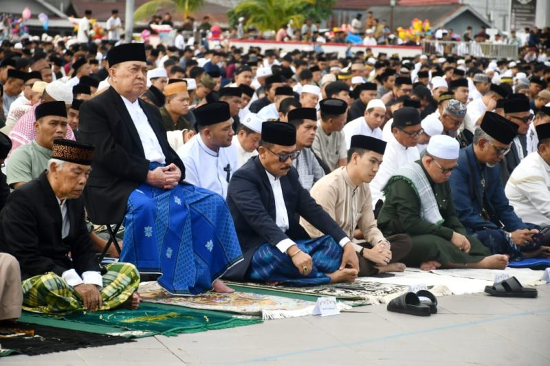 Setelah pelaksanaan shalat Idul Fitri, Wagub Salim S Mengga menyampaikan makna bulan suci ramadan yang telah dijalankan.